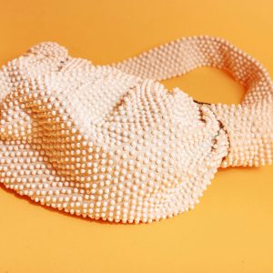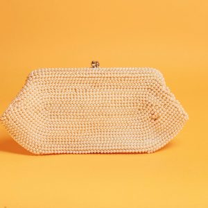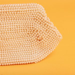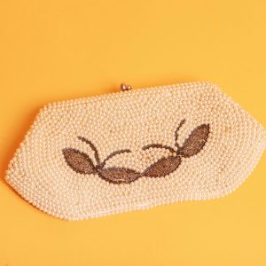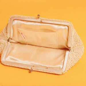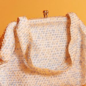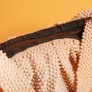 Light Beige Round Beaded Handbag