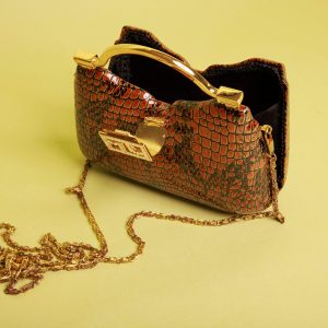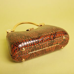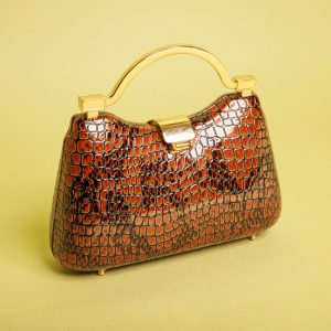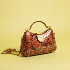 Luxurious Tan Crocodile-Print Clutch