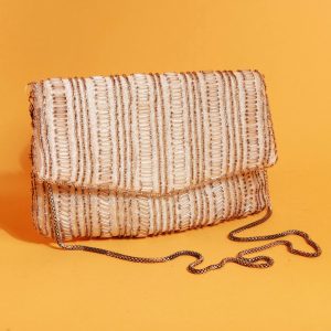 Off-White Butterfly Beaded Clutch