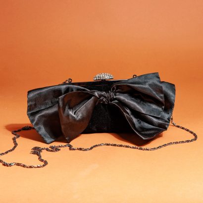 Featuring a velvet exterior with a soft, smooth feel and a luxurious matte finish, the black hue is classic and elegant, complementing any outfit. The bag is adorned with an oversized bow. The rich, three-dimensional shape, combined with the velvet, adds a sweet and romantic touch while retaining its elegant texture. It becomes a focal point, instantly making the clutch lively and eye-catching, radiating captivating charm with every gesture.