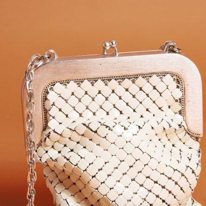 This handbag, with its distinctive chainmail metal exterior at its heart, seamlessly blends vintage charm with trendy style, making it a must-have for every fashionista.