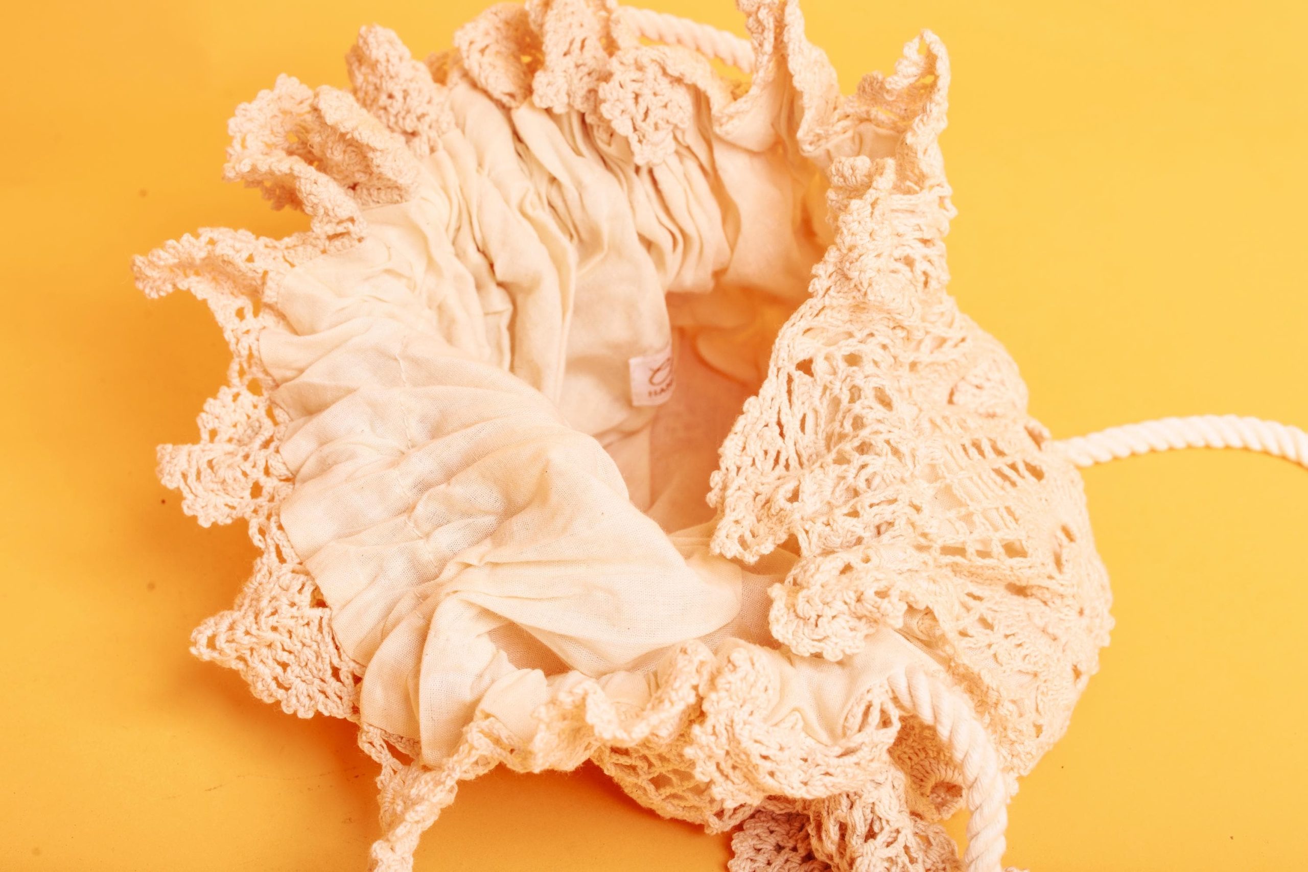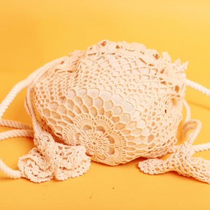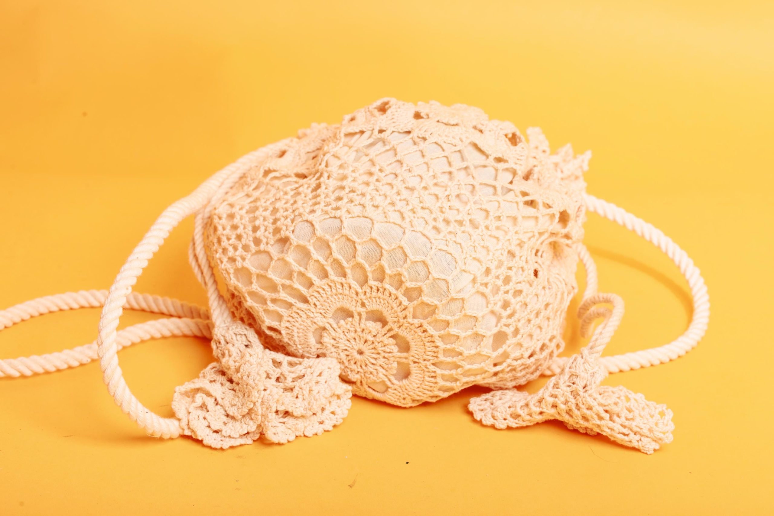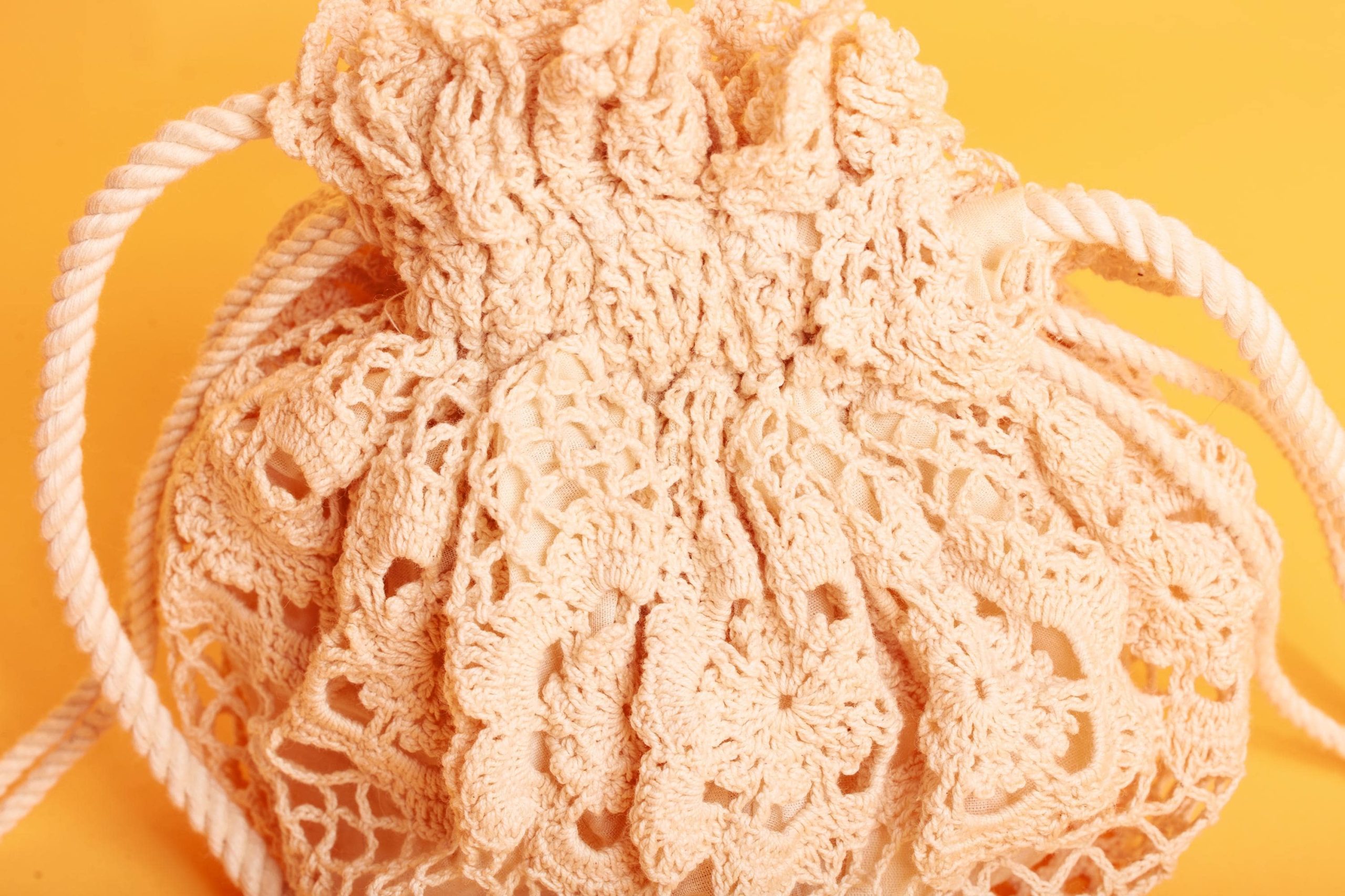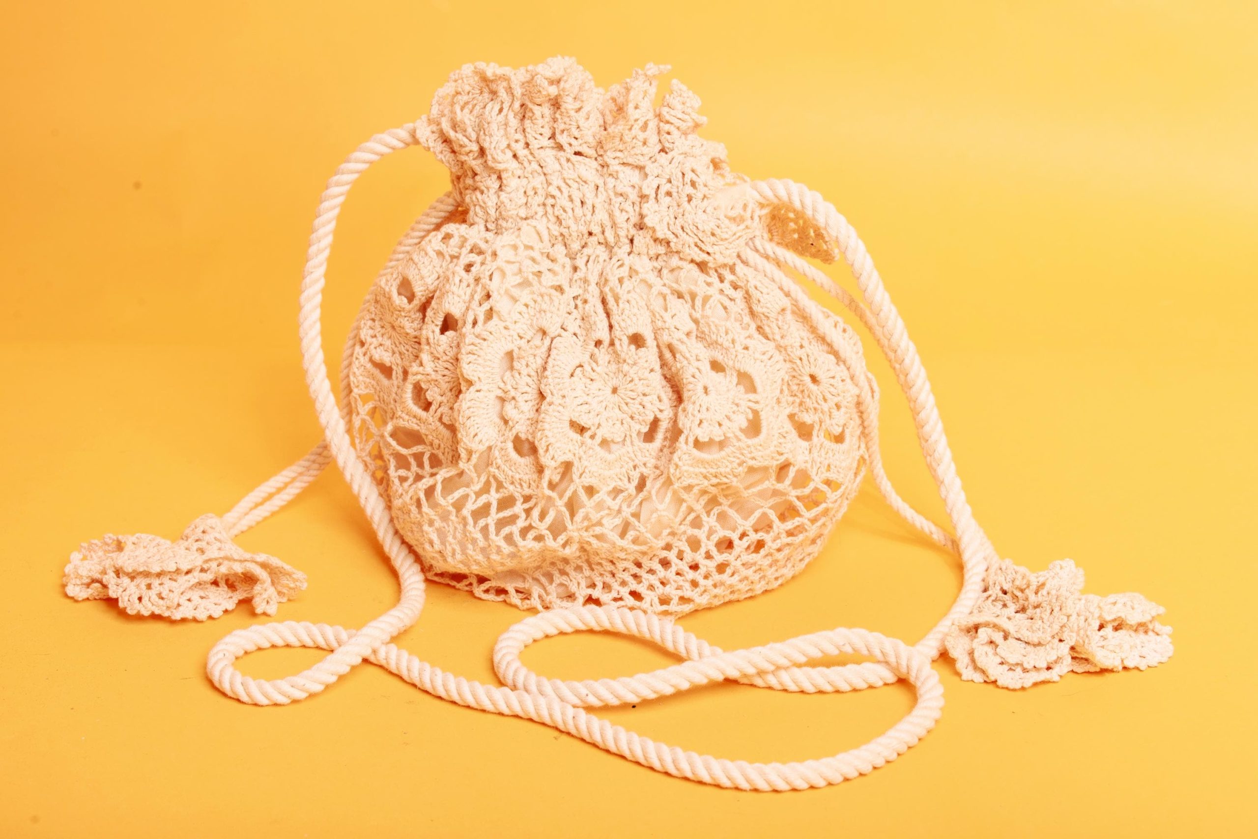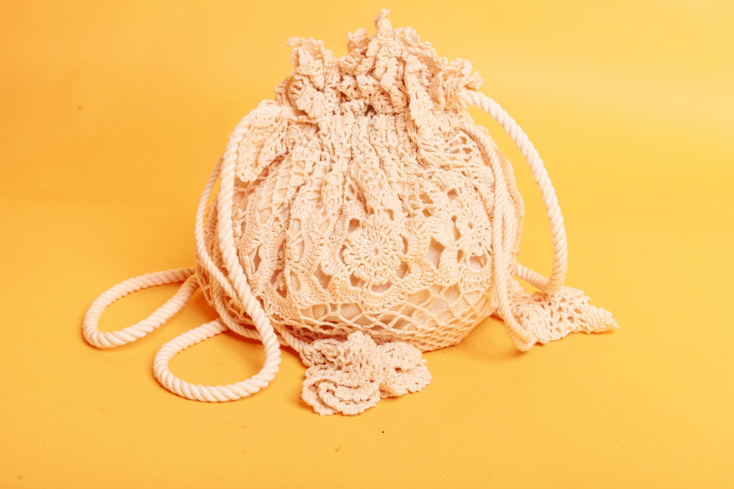 Whether paired with a flowing bohemian maxi skirt to showcase a free and romantic temperament, or combined with simple everyday items like T-shirts and jeans, using the gentle cream color and crocheted floral design to inject a touch of literary and individuality into the outfit, this cream-colored crocheted drawstring bag can be a perfect fit, becoming an excellent choice to enhance your styling taste and fully demonstrate the user’s pursuit of bohemian style and romantic life.