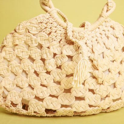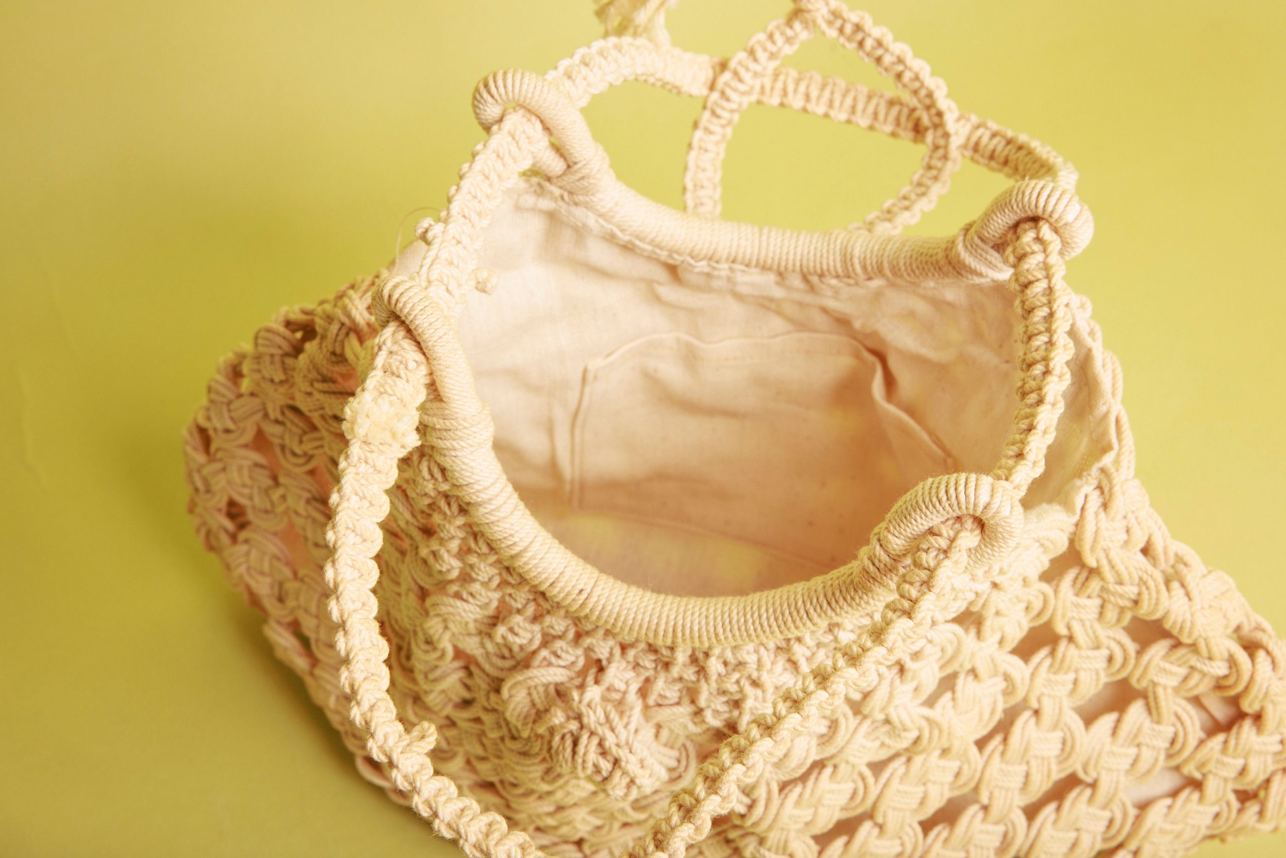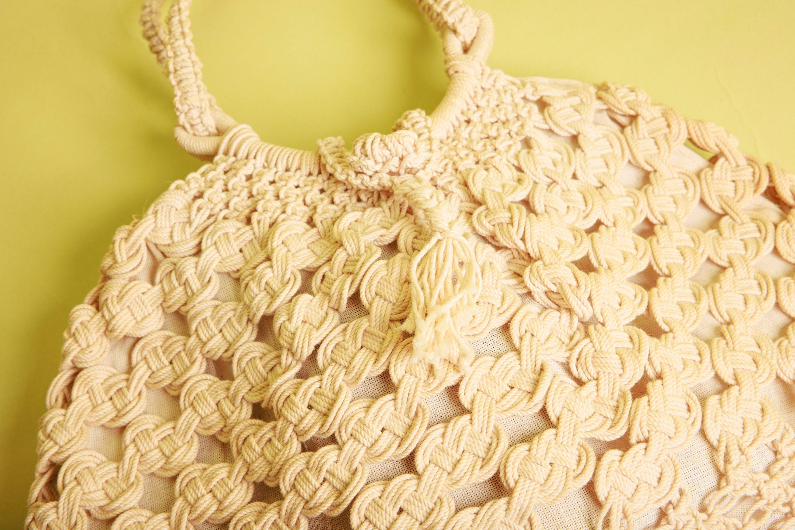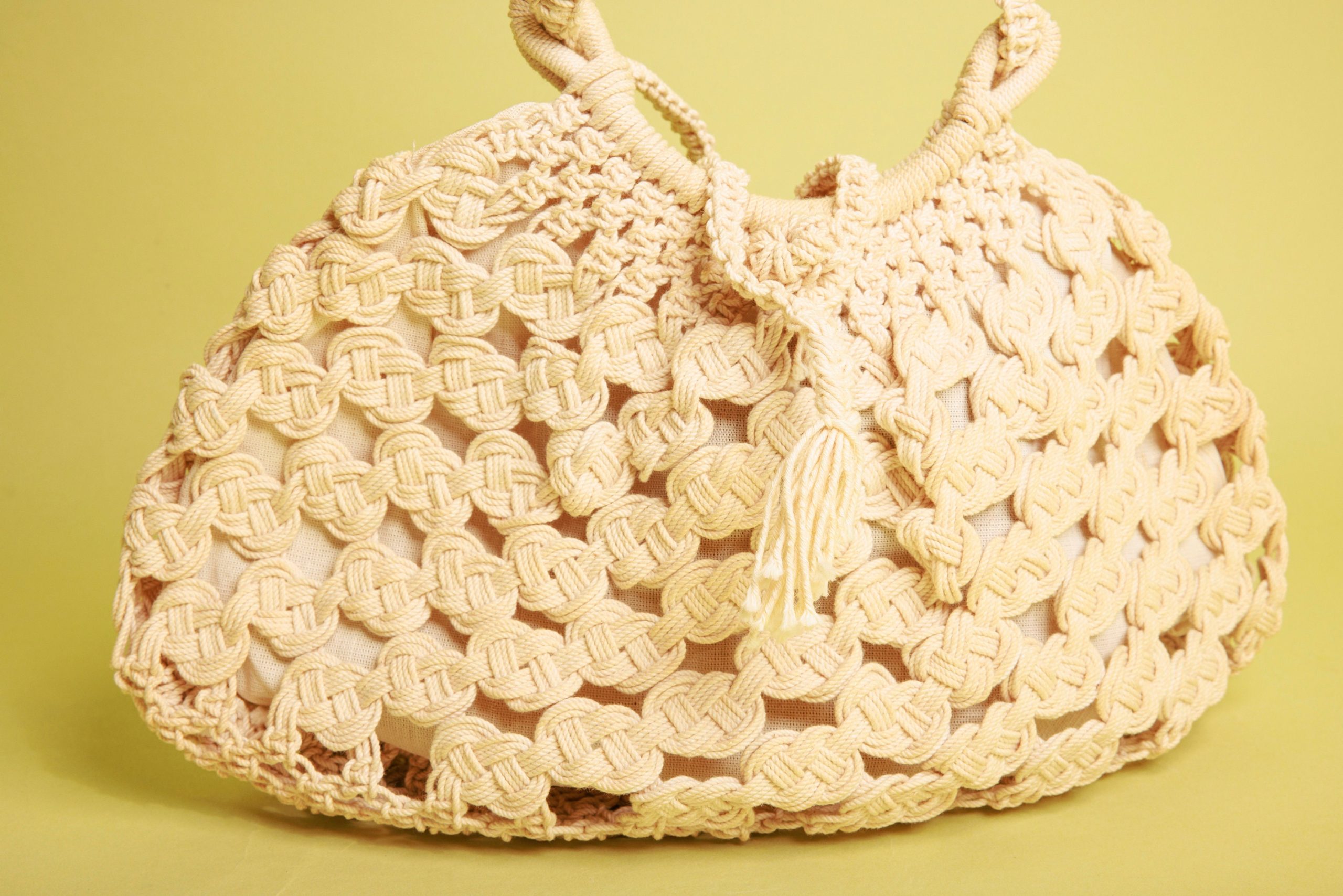 This light beige woven cord bag is a refreshing fusion of nature and craftsmanship.