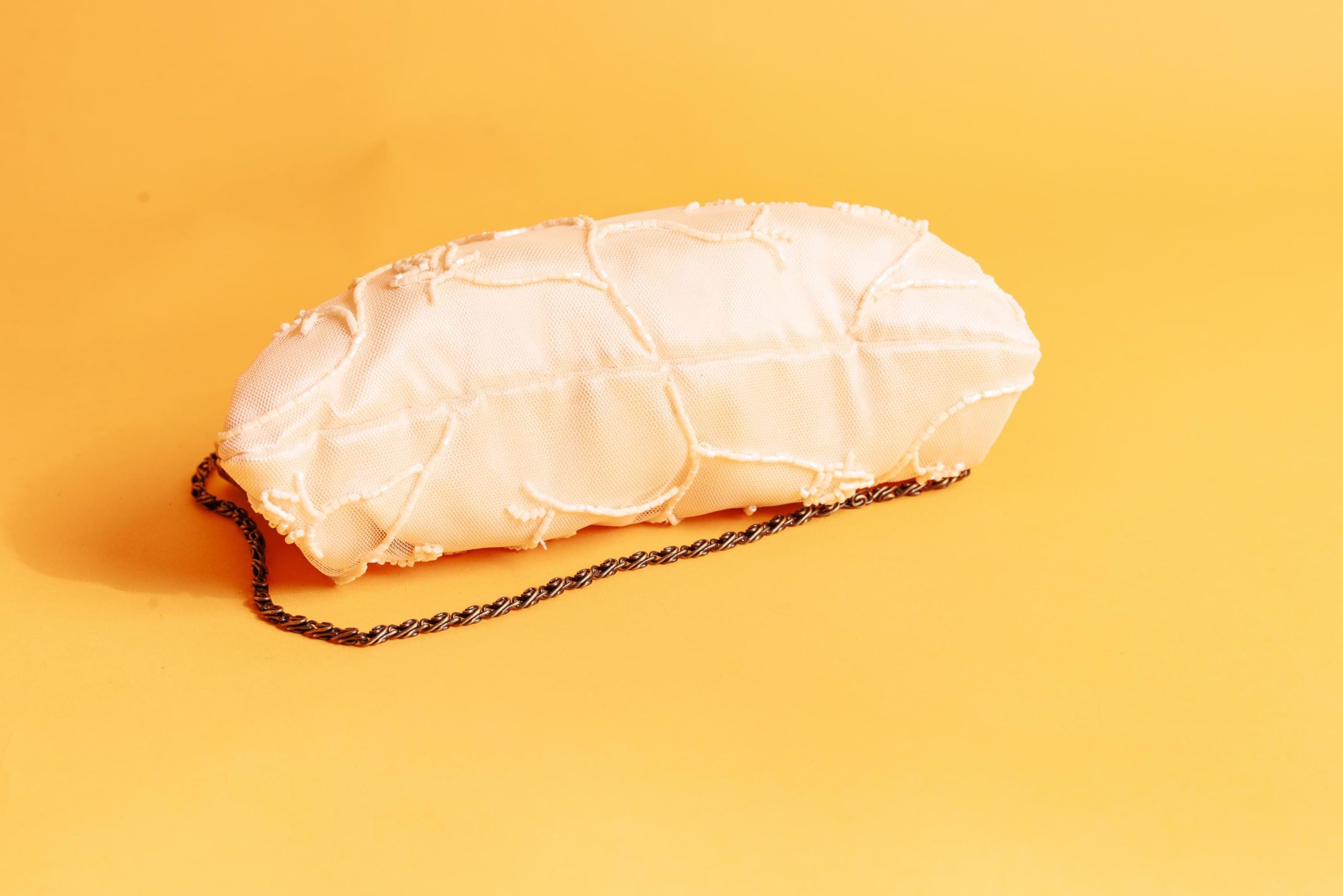 The bronze metal frame, with its retro and textured finish, creates a striking contrast with the softness of the light pink. It neutralizes the softness of the lace while adding a vintage, rugged and refined feel, enhancing the overall sense of harmony and style. The kiss-lock clasp not only secures the bag’s contents but also adds a touch of vintage elegance, showcasing meticulous attention to detail. The dark bronze chain strap can be used as a shoulder strap, freeing your hands for a versatile outfit. The chain can also be hidden for a vintage, romantic clutch, showcasing elegance.